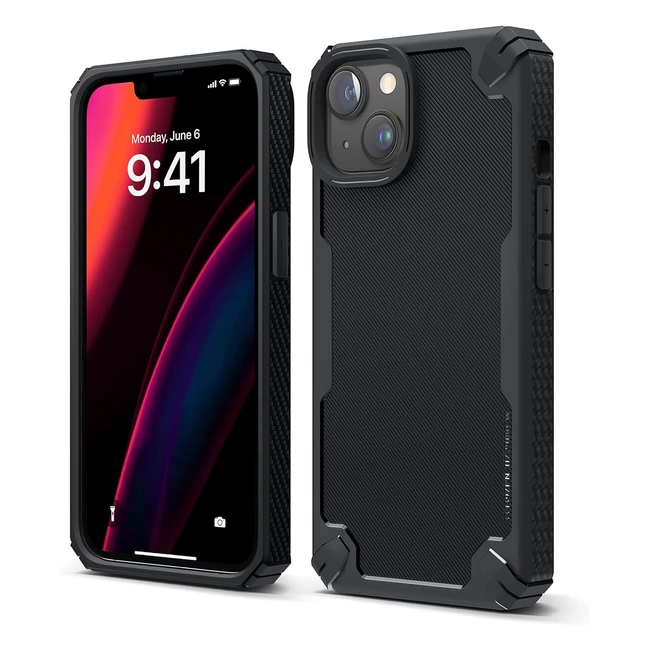 elago Armor Case for iPhone 14 - Military Grade Drop Protection - Carbon Fiber Texture - Shockproof Bumper Cover