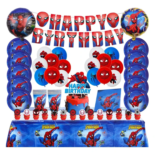 Offrez une fête inoubliable avec cet ensemble de décoration Spiderman. Comprend assiettes, tasses, serviettes, bannières, nappe, ballons et plus. Matériaux de haute qualité, non toxiques et respectueux de l'environnement. Parfait pour toutes les occasions. Achetez maintenant !