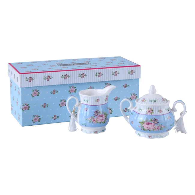 Ensemble théière en porcelaine avec sucrier et pot à lait - Style shabby chic vintage floral