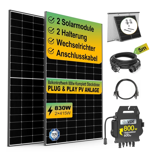 -20%Balkonkraftwerk 800w mit 2x415w 830w Solarmodulen, 1800w Wechselrichter, AC-Steckdosen, Montagezubehör, WLAN-Fernüberwachung. Jetzt eigenen Strom erzeugen!
