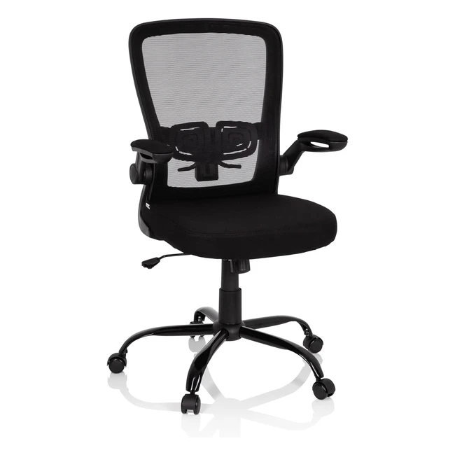 Ergonomischer hjh Office Mesh Bürostuhl Schwarz - Höhenverstellbare Lordosenstütze - Atmungsaktives Mesh - Rocker Mechanismus - Armlehnen klappbar