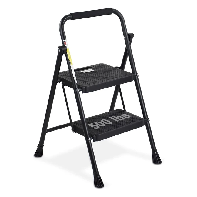 Escabeau pliable 2 marches, antidérapant, acier robuste, portable, 2268 kg, noir