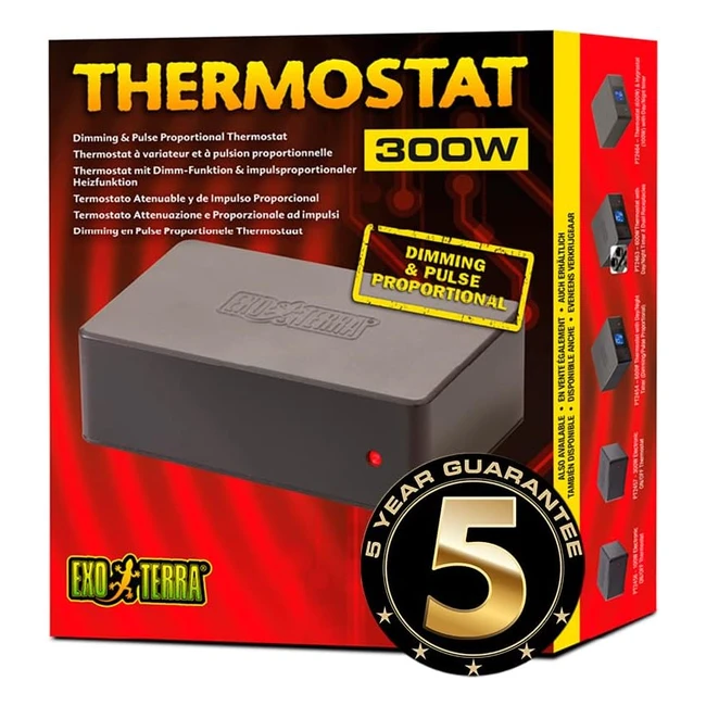 -15%Control terrarium temperatures accurately with the Exo Terra 300W Dimming Pulse Proportional Thermostat. Featuring a recessed dial to prevent accidental temperature changes, waterproof remote temperature probe, and compatibility with heat mats, cables, and ceramic heaters up to 300W. Suitable for all life stages.