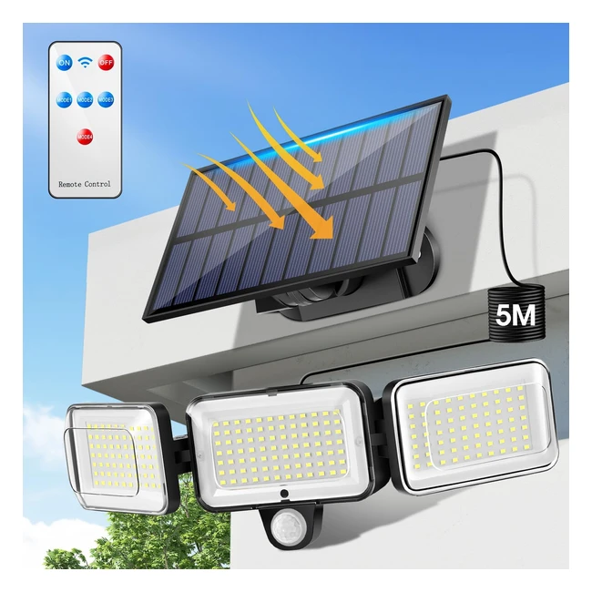 Faretto LED Esterno Solare 224 LED 3 Modalità 3 Teste 300 Luce Solare LED Esterno IP65 Faretti Solari a LED da Esterno Telecomando
