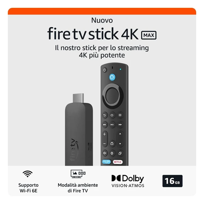Fire TV Stick 4K Max - Streaming 4K Ultra HD, WiFi 6E, Modalità Ambiente