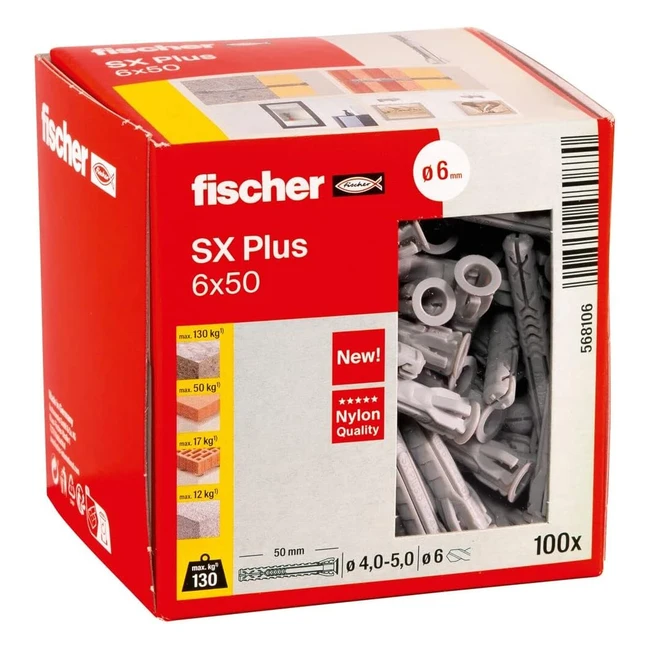 Fischer Dübel SX Plus 6x50 Box 100 Nylondübel für optimalen Halt in Beton Vollziegel Porenbeton Lochziegel