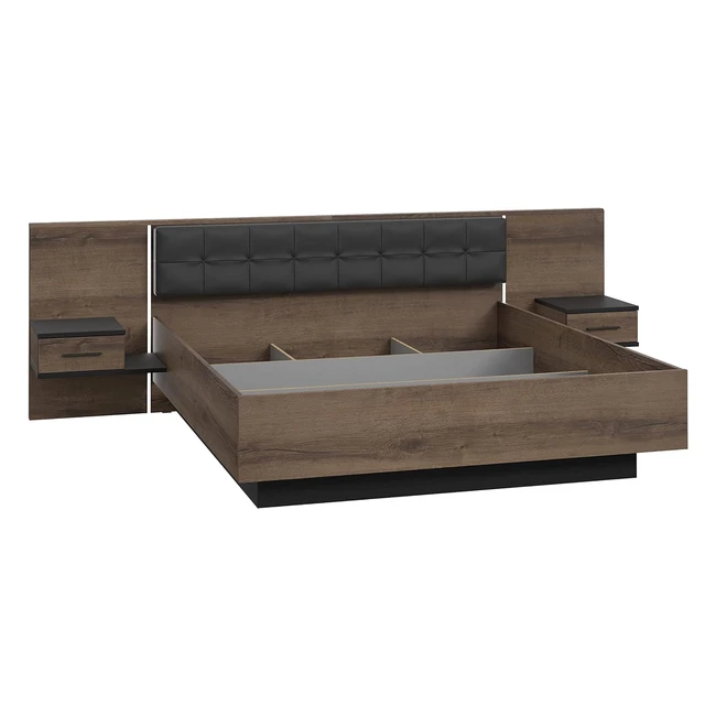 Forte Bellevue Bettanlage mit 2 Nachtkommoden 180x200 cm Schwarz Eiche Schlammeiche