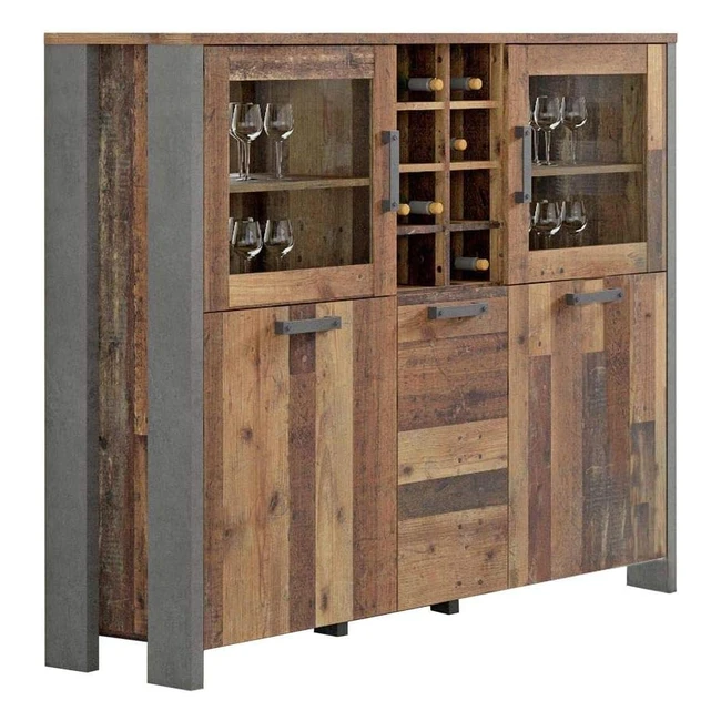 Forte Clif Highboard Display Cabinet 3 Türen 2 Glastüren Vintage Holz Betonoptik Dunkelgrau 1513 x 1254 x 415 cm