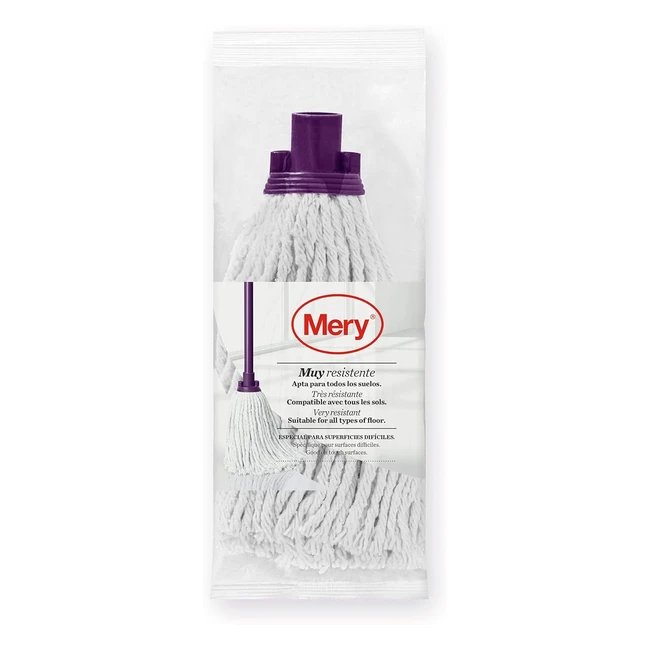 Fregona de Algodón Absorbente Mery, Resistente - Blanco y Lila - Medidas 22 cm