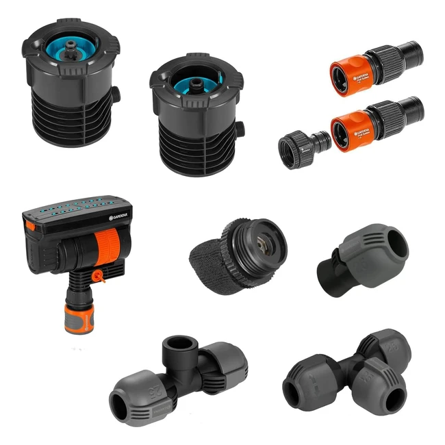 Starterset für das Pipelinesystem mit Viereckregner - Inklusive wichtiger Module und Verbinder für den Start in das Bewässerungssystem - Präzise Bewässerung auf einer einstellbaren Fläche von 9 bis 216 m2 - Ganzjährig im Einsatz zur Vorbeugung von Frostschäden - Automatische Entwässerung bei Außerbetriebnahme - Schmutzsieb für saubere Anschlüsse - Lieferumfang: 1x GARDENA Profisystem Anschlusssatz, 1x GARDENA Anschlussdose, 2x GARDENA Wassersteckdose, 1x GARDENA T-Stück 25 mm, 3x GARDENA Verbinder 25 mm 3/4 Zoll Innengewinde, 1x GARDENA Entwässerungsventil, 1x GARDENA Pipeline Viereckregner