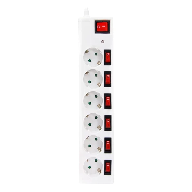 -37%¡Aprovecha esta oferta! Base múltiple con 6 tomas Schuko, interruptores independientes y cable de 15m. Protección infantil y contra sobretensiones. ¡No te lo pierdas!