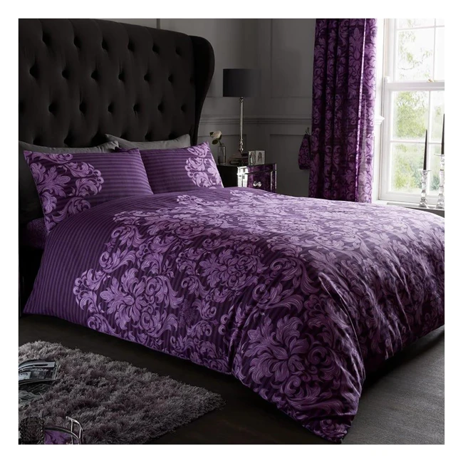 GC Gaveno Cavailia Printed Duvet Cover Set - Reversible Bedding - Empire Damask Purple - Double