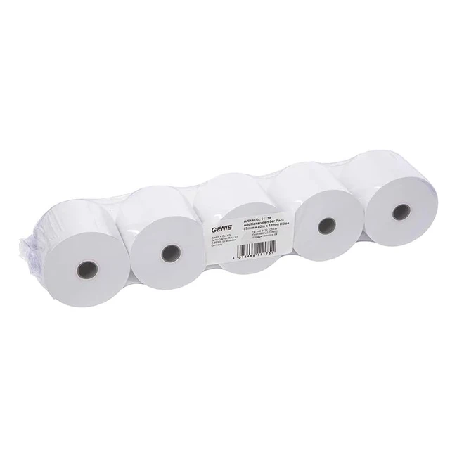 -7%Genie Ersatzpapierrollen fr Kassen und Druckende Tischrechner. Passend fr verschiedene Marken. Standardisierte Abmessungen. 100% holzfrei. Packung mit 5 Rollen.