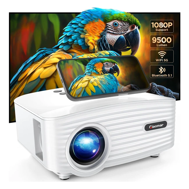 Giaomar Mini Projector 5G WiFi 1080p 9500 Lux Home Theater Movie Projector