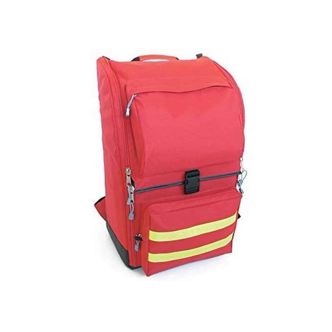 Zaino professionale per soccorritore/paramedico con modularità interna per un'organizzazione personalizzata degli spazi. Dimensioni: 40x30x57 cm. Fornito con 8 borsette colorate. Colore: Rosso.