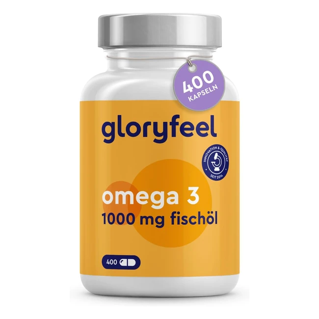 Gloryfeel Omega 3 Fischöl Kapseln 1000 mg - Vergleichssieger 2019 - 400 Stück - Hochdosiert mit 180 mg EPA und 120 mg DHA pro Kapsel - Ohne Magnesiumstearat