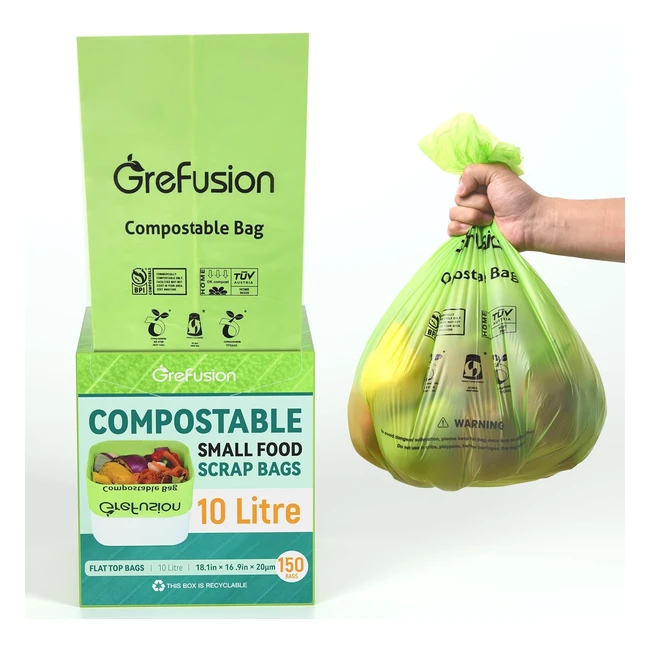 Grefusion 20 Extra Thick Compostable Caddy Liners 10L - 150 Bags | EN13432 Certified