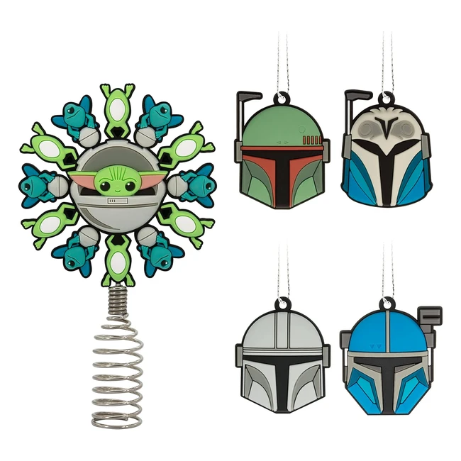 Hallmark Star Wars The Mandalorian 5 Miniature Christmas Tree Topper and 17 Mini Ornaments Set - Shatterproof