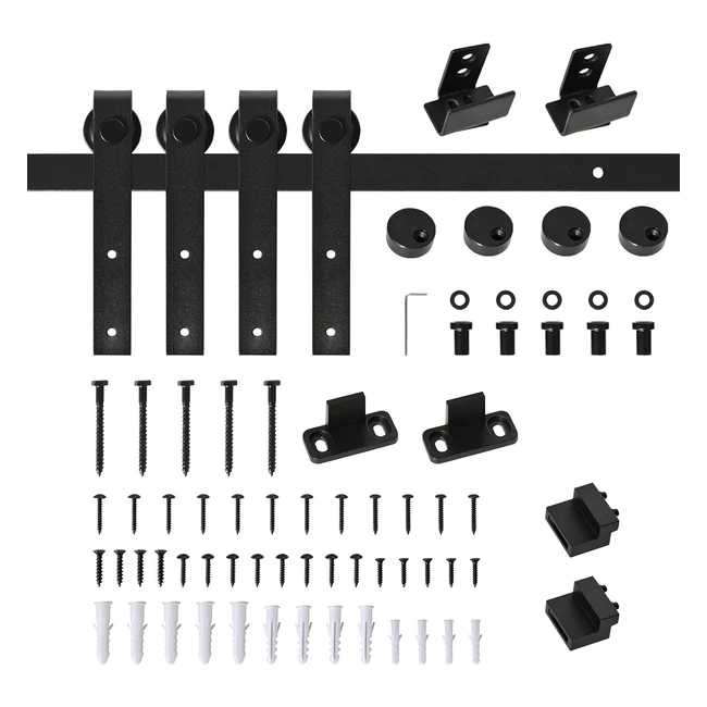 Homcom Schiebetür System Laufschiene Schiebetürbeschlag für Doppeltüren Zubehör Kohlenstoffstahl Schwarz 183 x 06 x 18 cm