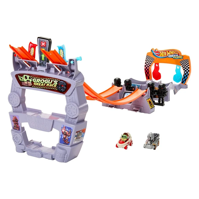 Hot Wheels Racerverse Grogu's Great Race Track Set - Star Wars Track Set with Diecast Hot Wheels Racers - HPL32