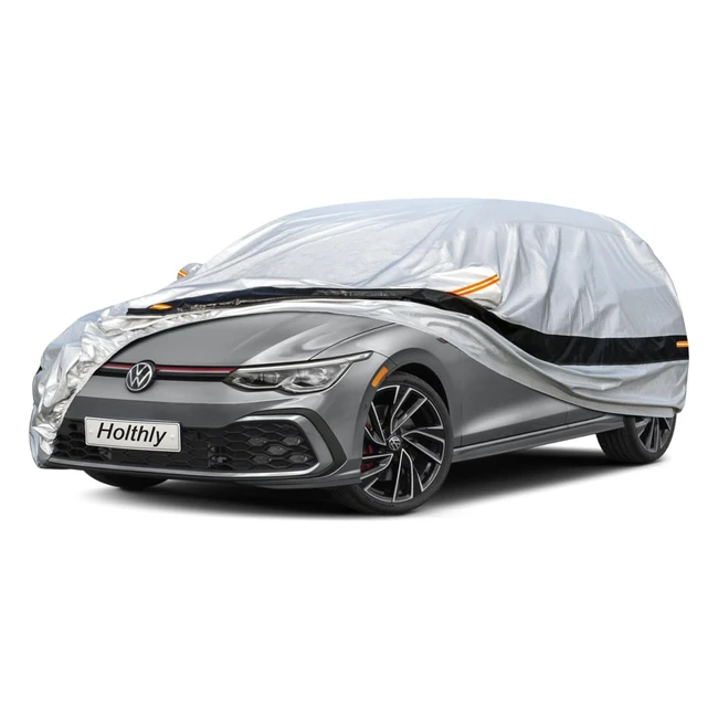 Housse Voiture Extérieur Holthly 10 Couches - Protection Voiture 100% Étanche Anti-UV Anti-Rayure - Citadine Audi A3 Sportback Renault Megane Peugeot 308 VW Golf - Argent