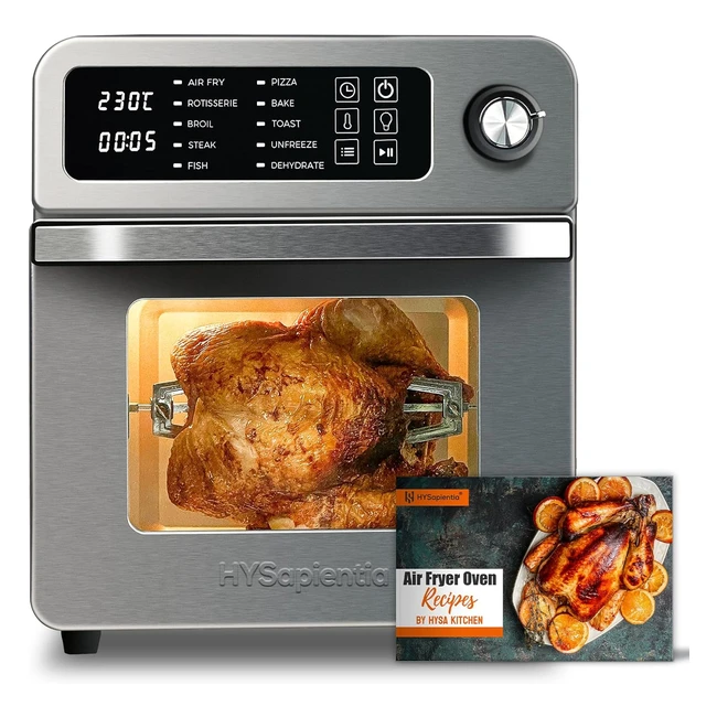 Hysapientia 15L Large Air Fryer Oven with Rotisserie | Digital Knob | 1700W | 10-in-1 | Double-Layered Glass Door