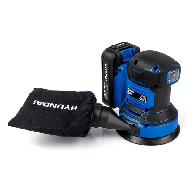 Hyundai 20V Max Cordless Rotary Sander - 2Ah Lithium-Ion Battery - Brushed - 12x 125mm Sanding Pads - Dust Collector Bag