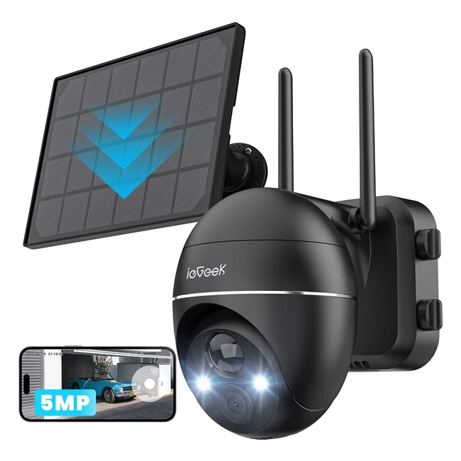 iegeek Camera Surveillance WiFi Exterieure Solaire 5MP Vision Nocturne Couleur Detection Humaine PIR Sirène Alarme Caméra IP Batterie Audio Bidirectionnel