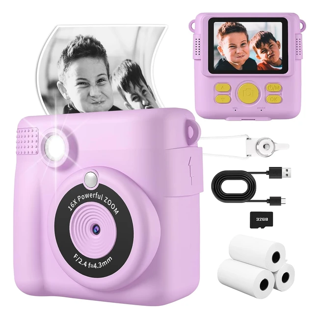 Instant Print Camera for Kids - Digital Camera 1080p HD - 32G SD Card - Age 6-12 - Birthday & Christmas Gifts