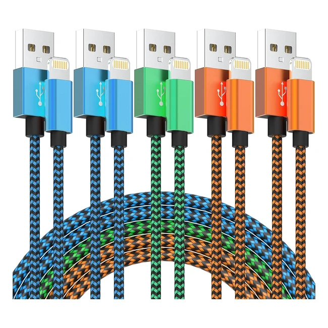 iPhone Charger Cable 6 ft MFi Certified Fast Charging Nylon Braided - Compatible with iPhone 14 13 12Pro Max - Color 5 Count