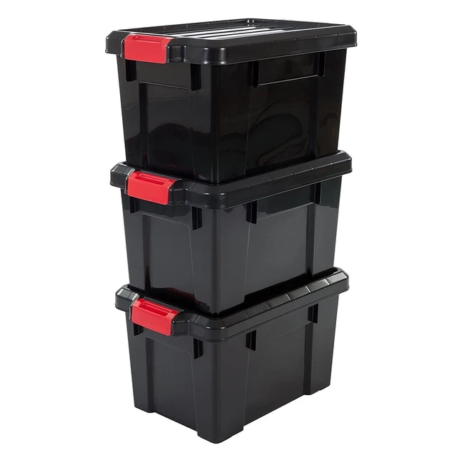 Iris Ohyama 3er-Set Aufbewahrungsbox DIY 21L mit Clips stapelbar Garage Power Box SK210 Schwarz