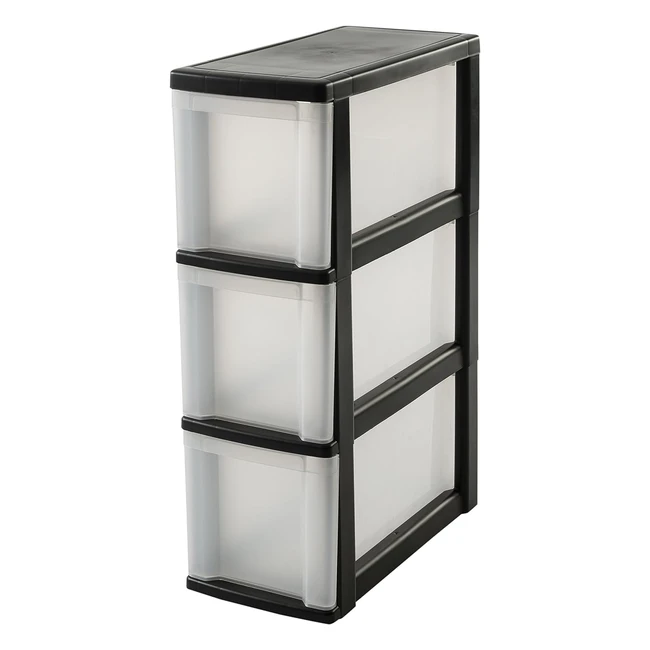 -15%Platzsparender Aufbewahrungsturm mit 3 Schubladen von 10L Kapazität. Einfach zu öffnen und schließen dank ergonomischem Griff. Ideal für Badezimmer oder Büro. Inklusive 4 Rollen für einfachen Transport. Begrenzte Stückzahl verfügbar!