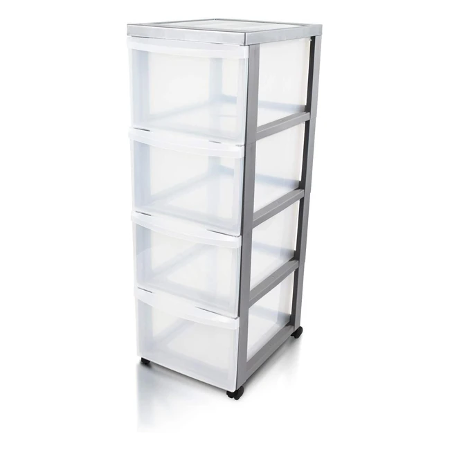 -26%Jetzt zugreifen! Schubladenschrank mit 4 Schubladen à 15 l und 4 Rollen. Transparente Schubladen ermöglichen einfache Inhaltsidentifizierung. 360-Grad-Rollen für maximale Mobilität. Abnehmbar bei Bedarf. Schubladenstopper für sicheren Halt. Maße: 39 x 29 x 815 cm.
