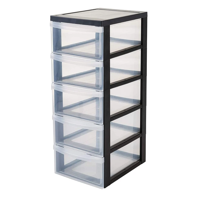 Iris Ohyama Schubladenschrank auf Rollen 5 Schubladen à 11 l mit Rollen ergonomische Griffe Büro Badezimmer Wohnzimmer Design Truhe DC005 Schwarz