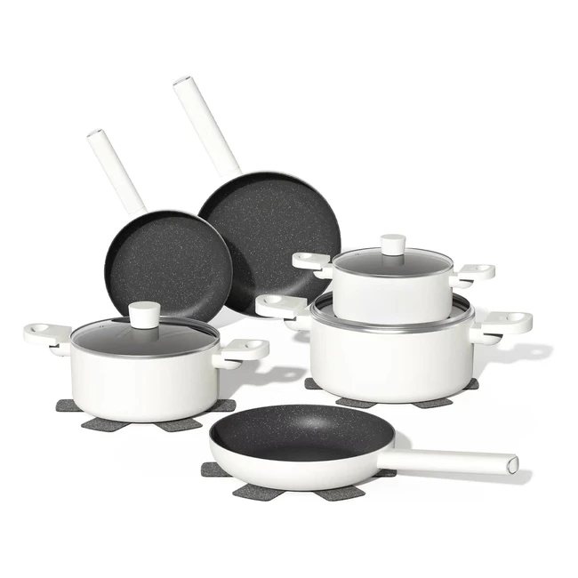 Jeetee Set Poêle et Casserole Induction 13 Pièces - Cuisson Saine - Revêtement Antiadhésif - Blanc