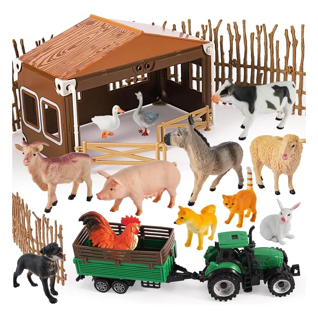 Figurines d'animaux de la ferme réalistes avec grange et clôture. Jouet éducatif pour apprendre et s'amuser. Idéal pour les garçons, filles et bambins. Achetez maintenant!