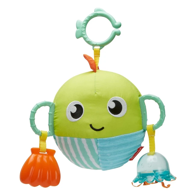 Découvrez le compagnon de jeu peluche poisson idéal pour des séances de jeu interactives. Agitez le hochet méduse et faites claquer le coquillage pour éveiller les sens de bébé. Différentes textures et matières à explorer pour stimuler sa curiosité. L'association de motifs variés aide au développement de sa vue. Pratique anneau pour fixation sur lit à barreaux ou poussette. Offrez-lui des moments ludiques et enrichissants dès la naissance.