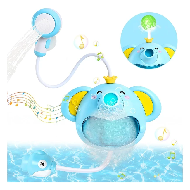 Jouets de bain avec musique pour bébé éléphant - Bulles de bain avec douche, eau et fontaine - Boule soufflante automatique - Cadeaux pour les tout-petits 1-3 ans