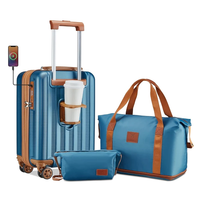 Joyway Juego de 3 Maletas de Viaje Cabina Expandible TSA 40x20x25 Azul Oscuro Marrón