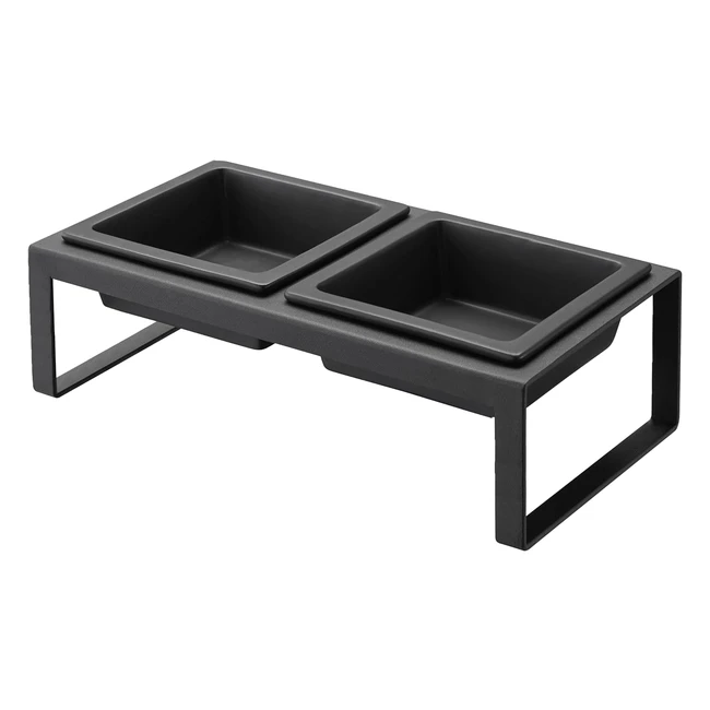 Juego de Comedero Yamazaki Torre para Gatos y Perros Pequeños - Acero Aleado Cerámica Negro