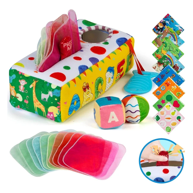 ¡Juguete Montessori perfecto para bebés de 0 a 12 meses! Incluye pañuelos de colores, sonido crujiente y campanas. Desarrolla motricidad, resolución de problemas y estimula los sentidos. Seguro, duradero y fácil de lavar. ¡Ideal como regalo de cumpleaños o para cualquier ocasión especial!