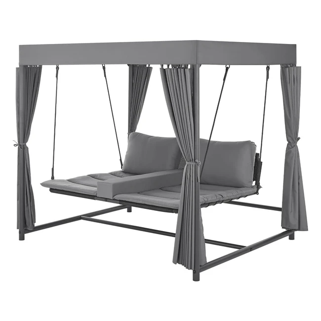 Juskys Garten Schaukelliege Kassandra - Outdoor Gartenliege mit Sonnendach und Vorhängen für 2 Personen - Grau