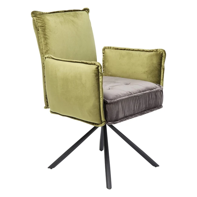 Kare Chelsea Designer Drehstuhl mit Armlehnen Samt-Look Stahlbeine drehbar 90 x 65 x 60 cm H x B x T grün