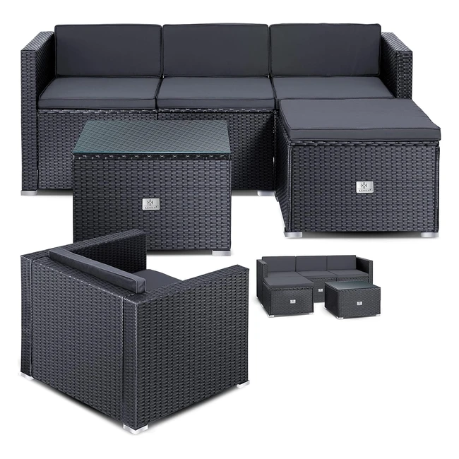 Kesser Aruba Polyrattan Lounge - Gartenlounge für 4-5 Personen - Gartenmöbel Set - Sitzgruppe aus 3er Gartensofa, Sessel, Hocker & Beistelltisch mit Sitzkissen für Garten, Terrasse und Balkon