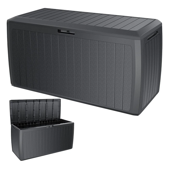 Wetterfester Stauraum: Unsere Kissenbox mit 290 Litern Stauraum bietet ausreichend Platz für Ihre Sitzbezüge, Kissen und andere Gartenaccessoires wie Werkzeuge und Spielzeug. Die Aufbewahrungsbox ist UV- und wetterbeständig und bietet somit optimalen Schutz zu jeder Jahreszeit und gewährleistet eine lange Lebensdauer. Die robuste und wetterfeste Material der Truhe sorgt dafür, dass sie besonders leicht zu reinigen und pflegeleicht ist. Flexible und sichere Räder und Griffe machen die Gartenbox leicht zu bewegen und zu transportieren. Darüber hinaus kann der Deckel bis zu 100 kg Last tragen, sodass Sie sich im Garten ausruhen können. Die Aufbewahrungsbox bietet Ihnen auch ein hohes Maß an Sicherheit, sodass Sie ein Vorhängeschloss mit einem Schloss anbringen können, um Gartenaccessoires sicher in einer Gartenbox zu lagern. Allrounder: Die Aufbewahrungstruhe ist dank der vertieften Griffe an der Seite leicht zu platzieren und zu bewegen, sowohl im Garten als auch auf der Terrasse oder de