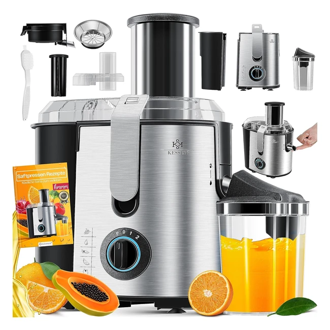 Kesser Entsafter für Obst und Gemüse aus Edelstahl 1100W große 85 mm Einfüllöffnung inkl. Entsafter Reinigungsbürste und Saftbehälter 3 Geschwindigkeitsstufen