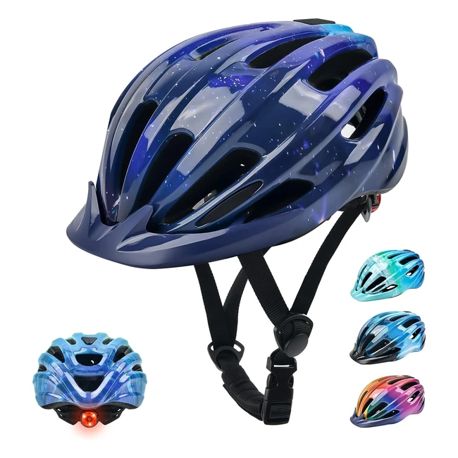 -16%Grab this kids bike helmet with a safe tail light and LED lights for night rides. Shock-resistant design for all-round protection. Lightweight and comfortable with 16 vents. Perfect gift for birthdays and holidays. Size: 5057cm.