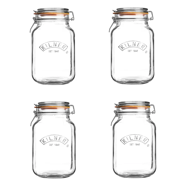 Kilner 15L Square Clip Top Glass Jar - Pack of 4 | Preserving, Pickling, and Pantry Storage