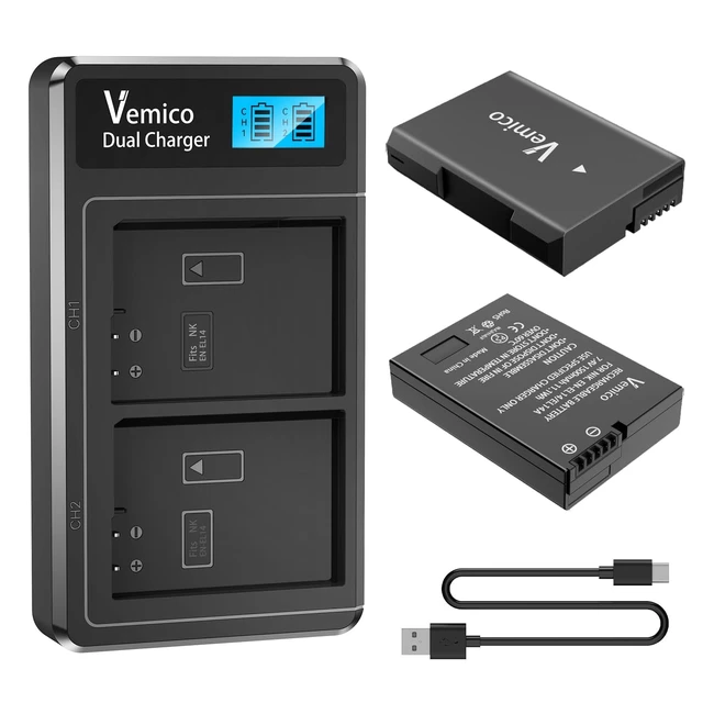 Kit 2 Pack Vemico ENEL14 Batterie Chargeur 1500mAh Remplacement Nikon D3100 D3200 D3300 D5100 D5200 D5300 D5500 D5600