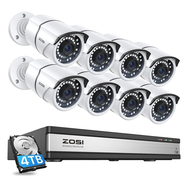 Kit de Cámara de Vigilancia Zosi 4K, 16CH, 8MP, NVR con 8x Cámaras IP 5MP, Visión Nocturna, Alarma de Movimiento